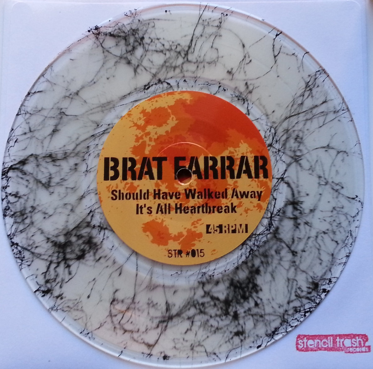 Very super limited edition single sided 45 containing "Should Have Walked Away" and vinyl only track "It's All Heartbreak". Only 77 available in each colour clear and grey Look at the photos. They are totally mind blowing and this is an amazing piece of packing from Stencil Trash Records. The record sleeve opens out and fold in and does crazy things!! Guaranteed Collectable